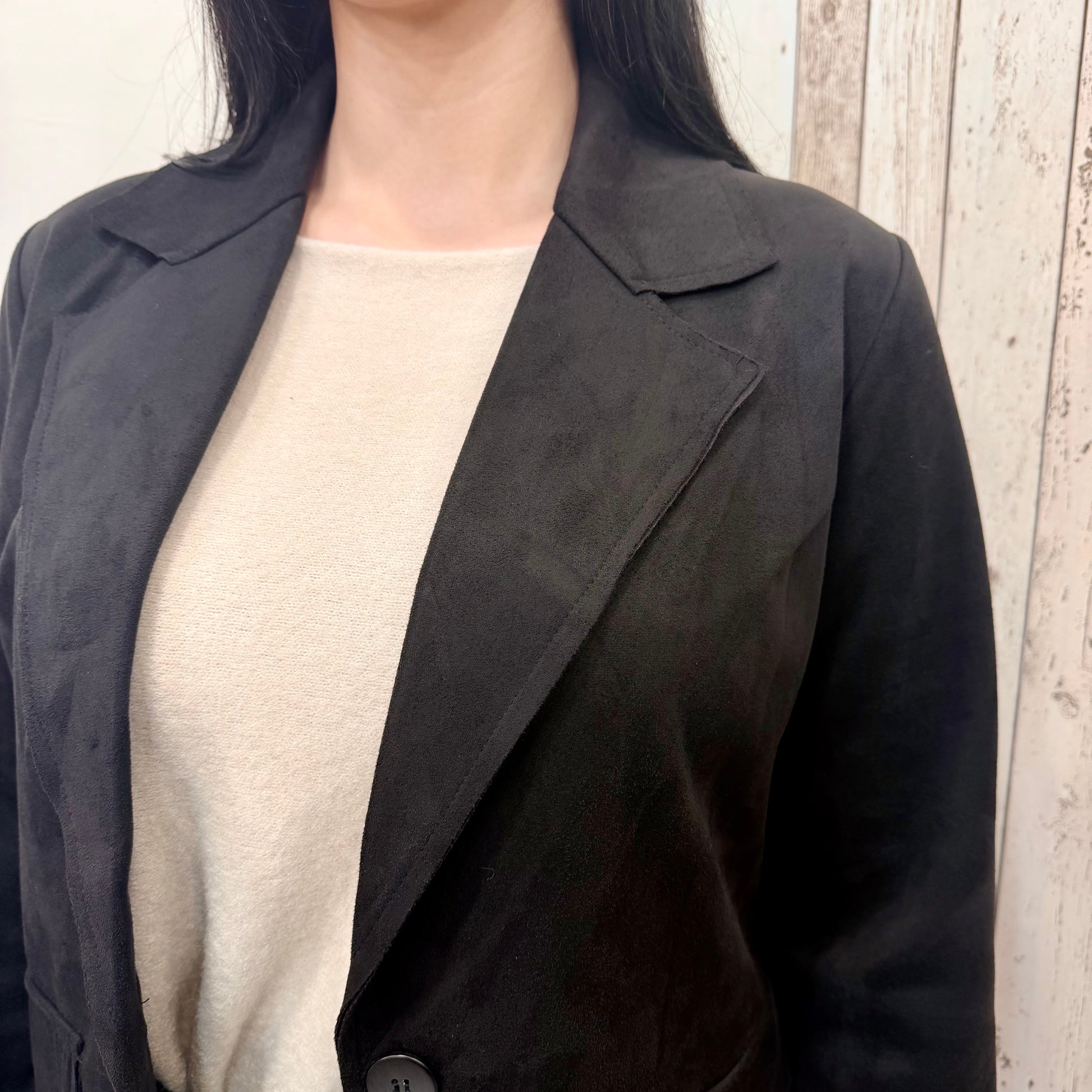 Scopri il BLAZER SUEDE NERO, il tuo alleato per uno stile raffinato! Realizzato in morbido suede, offre un comfort senza pari e una vestibilità perfetta per taglie M-XL. Sii pronta a rubare la scena in ogni occasione con eleganza e naturalezza!