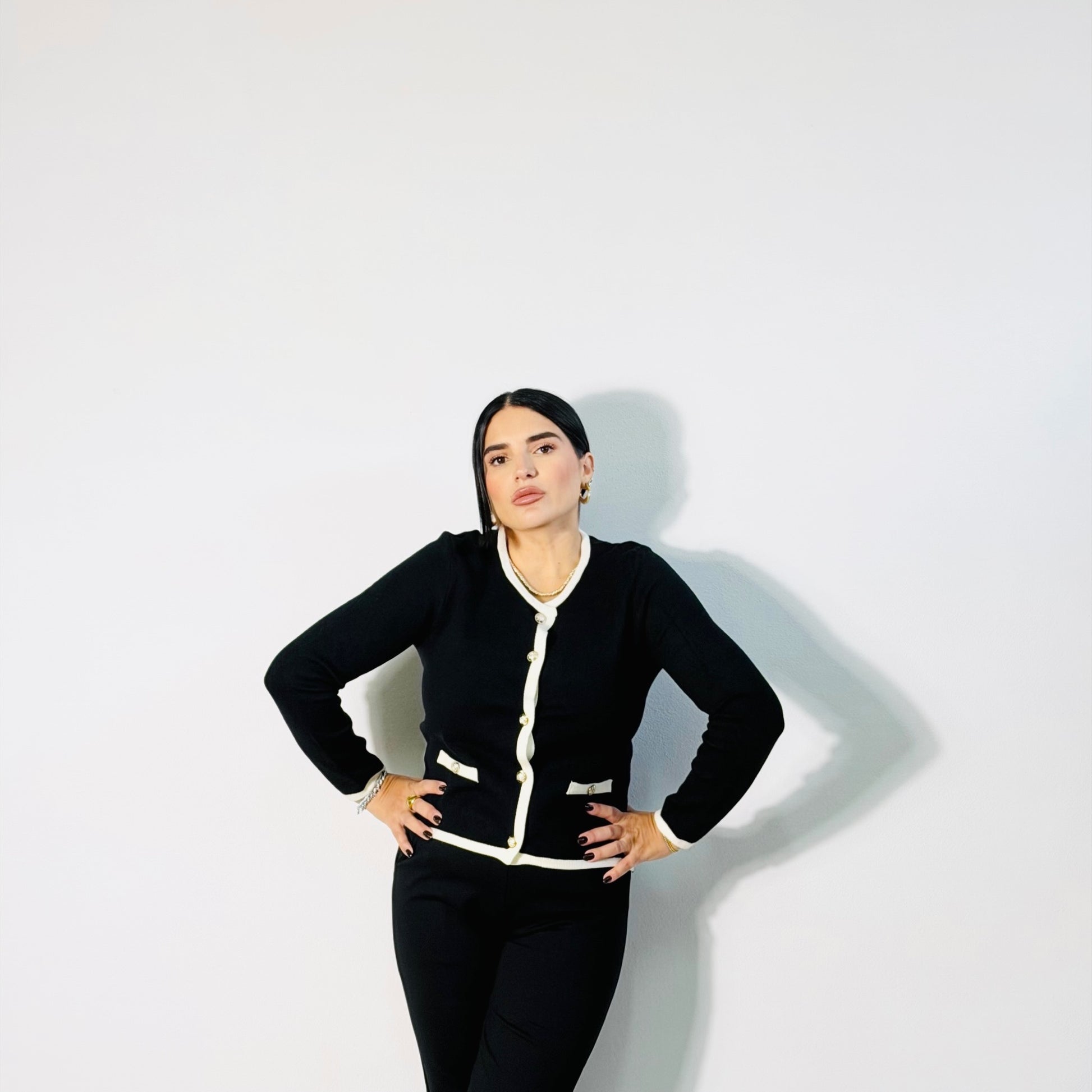Ispirato all’intramontabile stile parigino, il Cardigan Coco unisce eleganza e comfort in un capo senza tempo. Realizzato con tessuti morbidi e raffinati, presenta dettagli curati come i bottoni gioiello e i profili a contrasto che donano un tocco di classe a ogni outfit. Perfetto da indossare sia con un jeans per un look casual chic, sia sopra un abito per un’eleganza sofisticata.