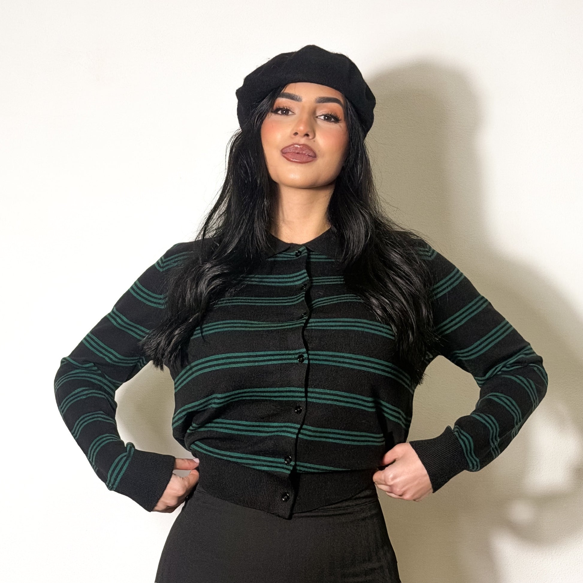 Scopri il CARDIGAN STRIPE, un capo d’abbigliamento unico con il suo motivo a righe a contrasto che cattura l’attenzione. I bottoncini tinta unica e il colletto a polo donano eleganza, mentre i polsini e la vita elastici garantiscono comfort e una vestibilità perfetta. Indossa questo cardigan per sentirti straordinaria ogni giorno!
