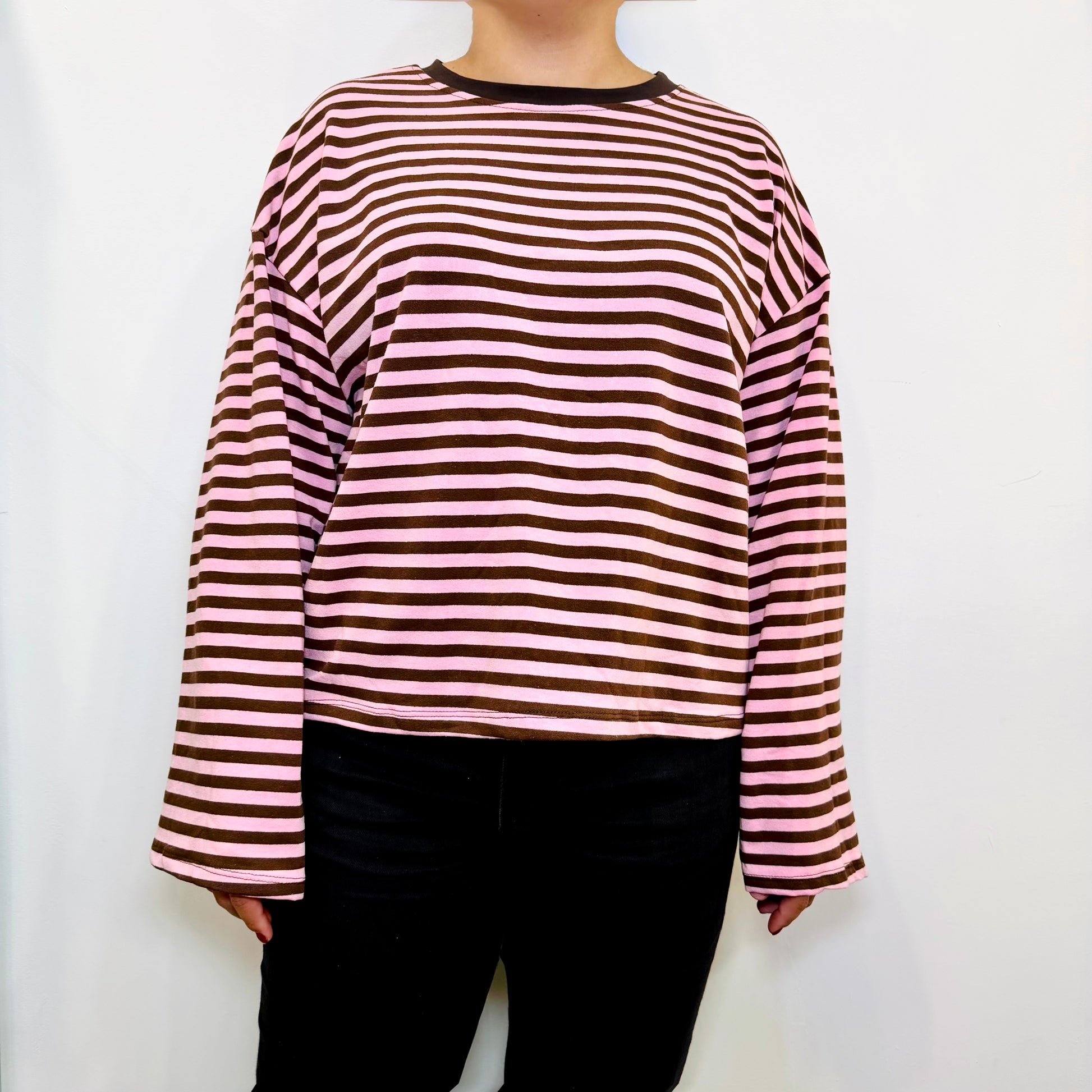 Long Sleeve Viral- Aggiungi un tocco trendy al tuo look con la Long Sleeve Viral. Questa maglia a maniche lunghe unisce comfort e stile grazie alla sua vestibilità morbida e al design oversize, perfetto per un outfit casual ma curato. Le righe creano un contrasto moderno e vivace, anche il girocollo a contrasto aggiunge un dettaglio minimal ma distintivo. Ideale per ogni stagione.