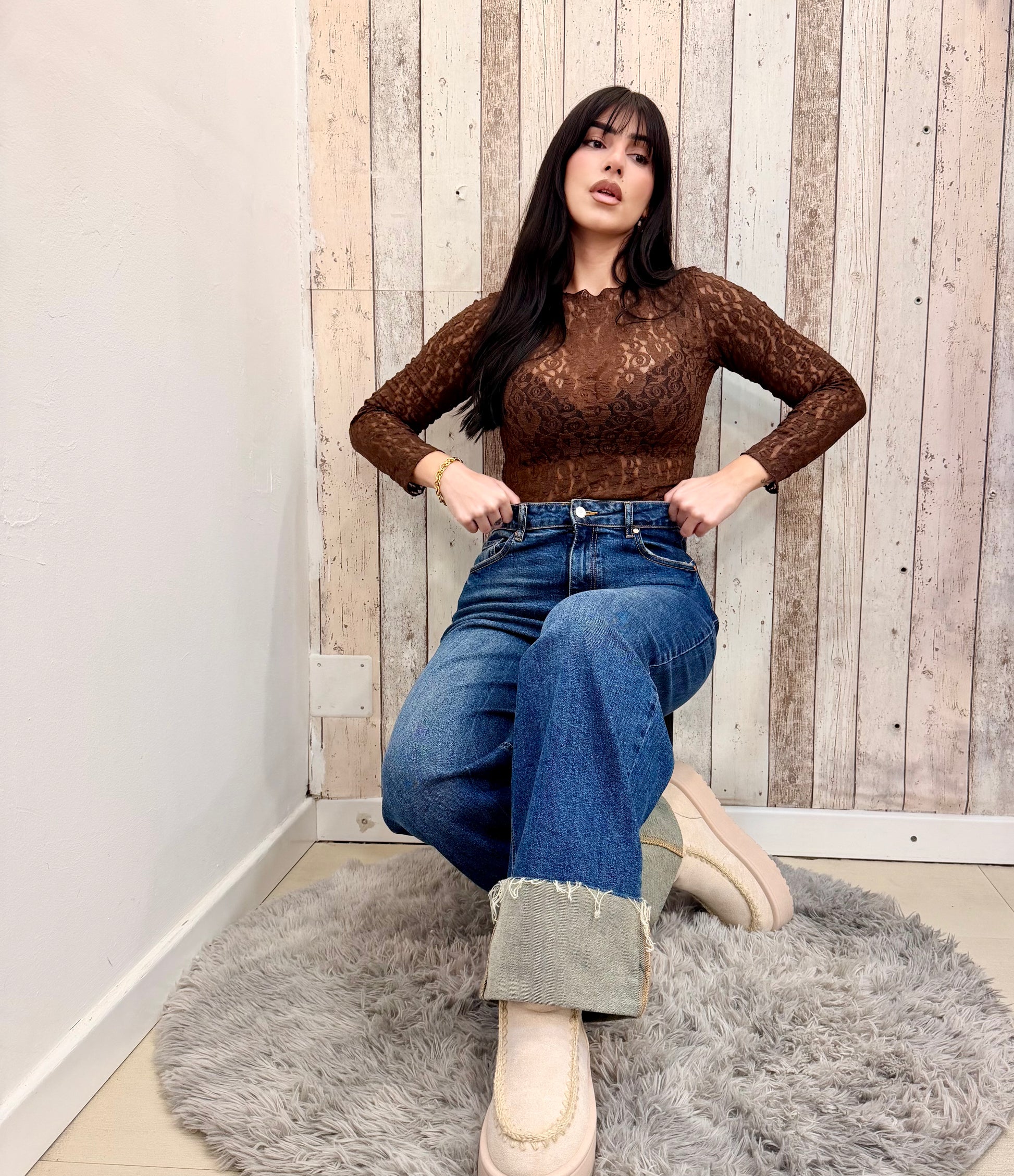 Eleganza sofisticata in ogni dettaglio. La MAGLIA LACE MARRONE combina il fascino senza tempo del pizzo con la versatilità del nero, creando un capo che si adatta perfettamente a qualsiasi occasione. Che tu stia cercando un look raffinato per una serata speciale o un pezzo versatile da indossare quotidianamente, questa maglia offre comfort e stile in perfetto equilibrio. Il pizzo delicato valorizza la silhouette mentre il colore nero garantisce abbinamenti facili con il resto del tuo guardaroba. Un investimento di moda che non passerà mai di moda.