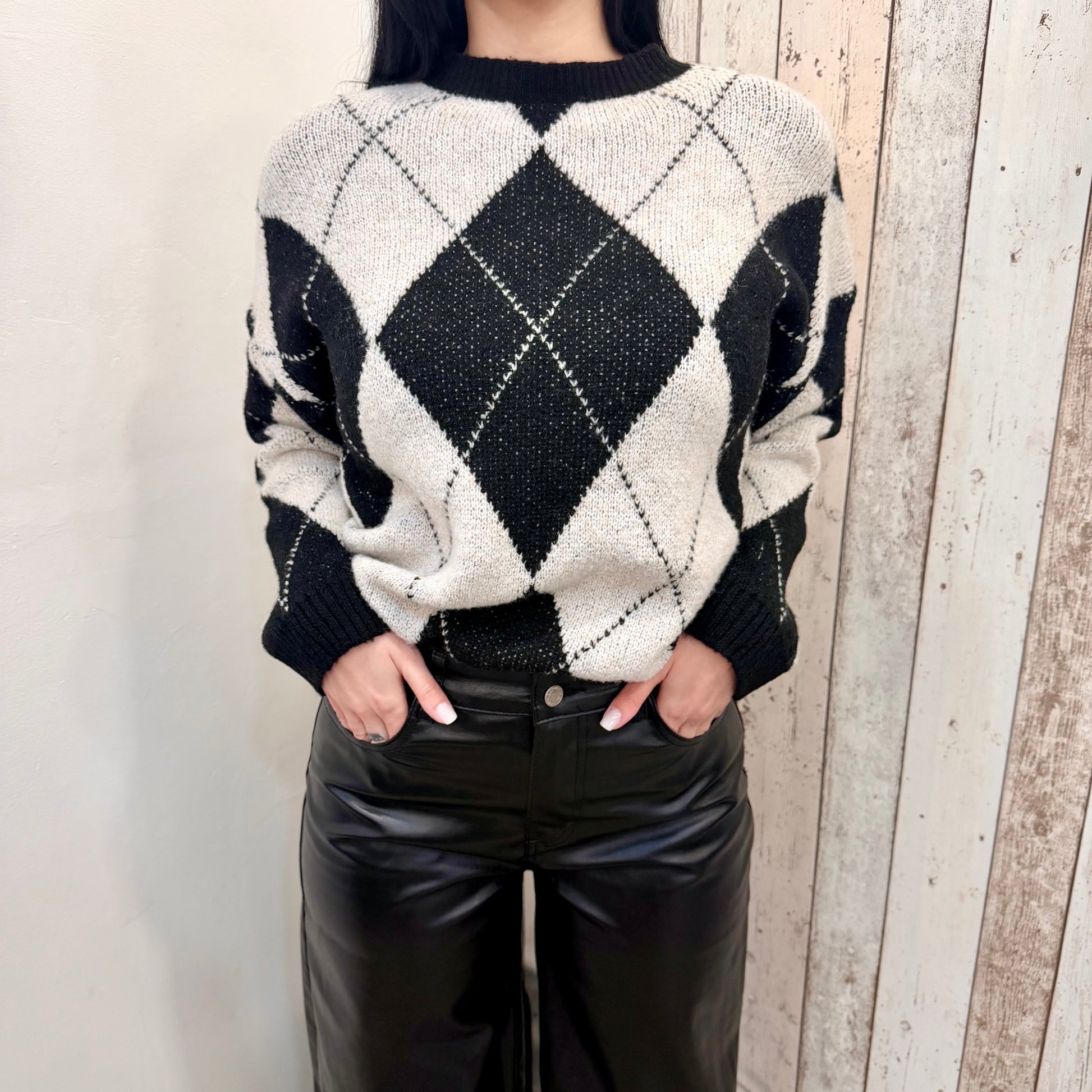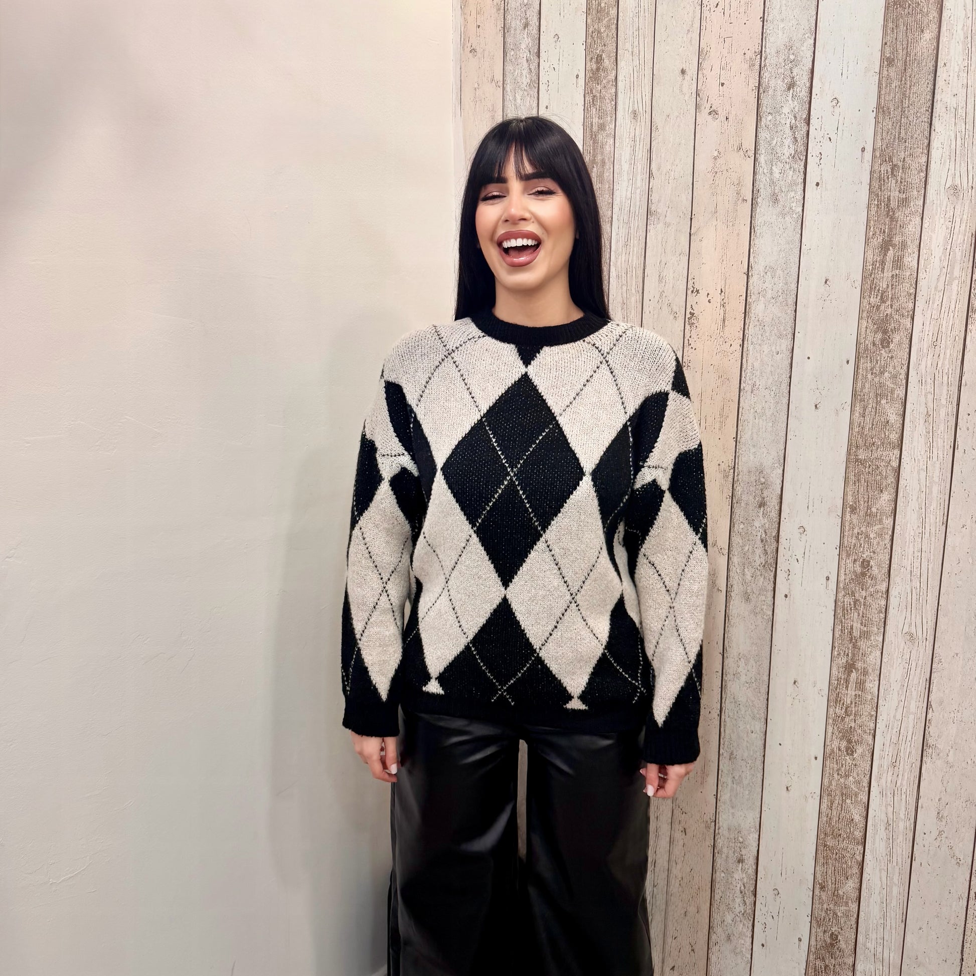 Scopri il MAGLIONCINO ARGYLE BLACK, il compagno perfetto per ogni occasione! Con il suo morbido tessuto e il trendy pattern argyle, questo maglioncino trasforma il tuo look in modo unico e ricercato. Caldo e versatile, si adatta a ogni stile, dal casual all'elegante. Indossa la tua personalità!