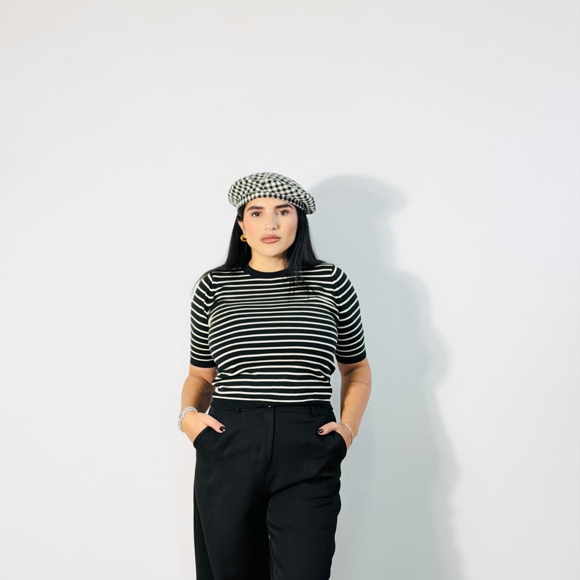 MAGLIONCINO BONTON – Il fascino dello stile parigino. Un capo dal gusto elegante e senza tempo, caratterizzato da un delicato pattern a righe che richiama l’intramontabile stile francese. Realizzato in tessuto morbido e confortevole, con maniche corte che lo rendono perfetto come sotto giacca o da indossare da solo nelle mezze stagioni. Versatile, chic e raffinato: il maglioncino ideale per look curati ma effortless. Vestibilità: Taglia unica (dalla S alla XL)