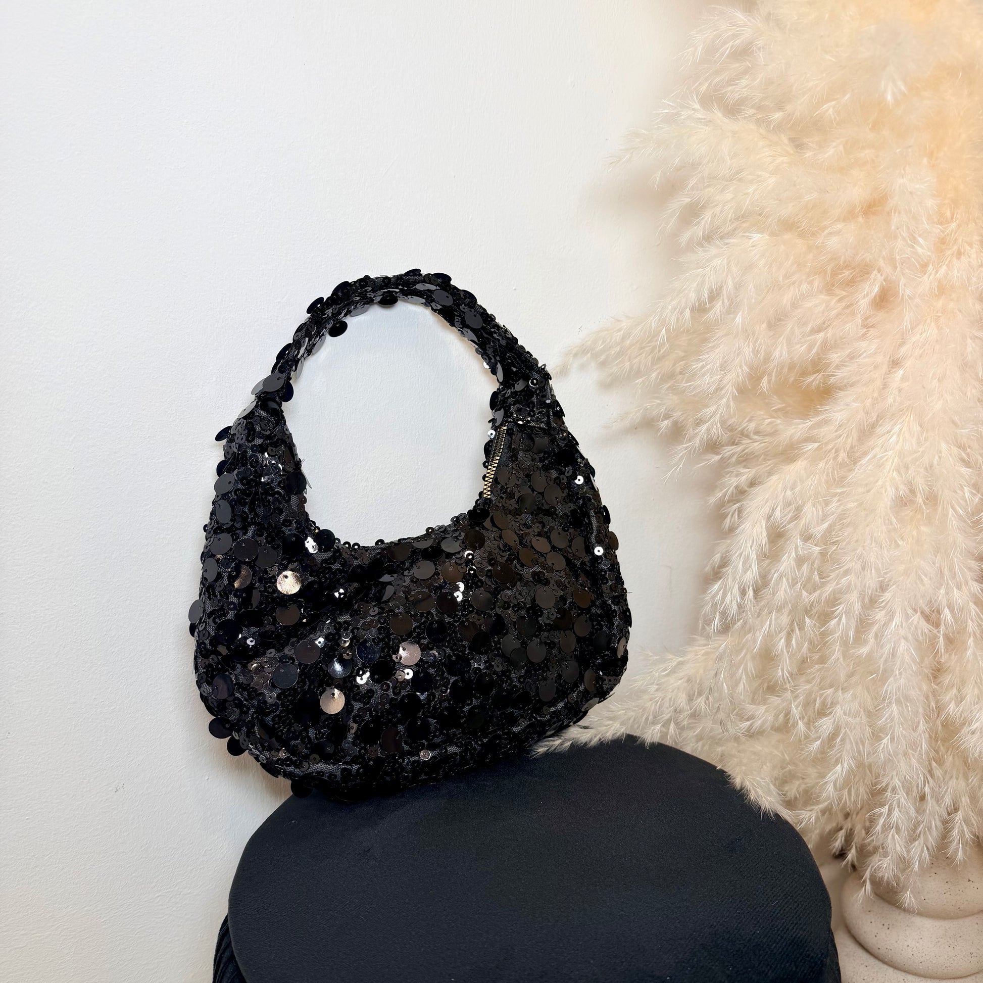 Impreziosisci tutti con la nostra MINI BAG PARTY BLACK! Questa piccola borsa a spalla in paillettes è perfetta per i vostri eventi più glamour. Senza tracolla per un look elegante e con zip per tenere al sicuro i vostri oggetti più preziosi. Aggiungete scintillio alle vostre serate!