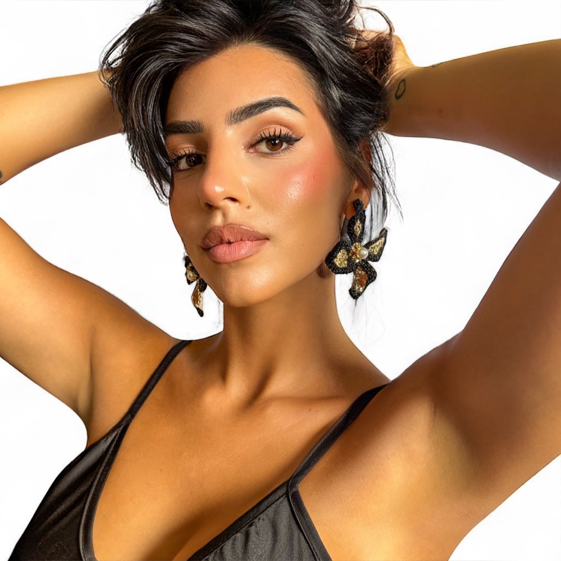 Scopri l’eleganza senza tempo degli orecchini lobo a forma di fiore in acciaio dorato e pietre nere, grandi e dal design raffinato. Perfetti per valorizzare ogni tuo look con un tocco di originalità e stile deciso. Il prezzo si riferisce alla coppia.