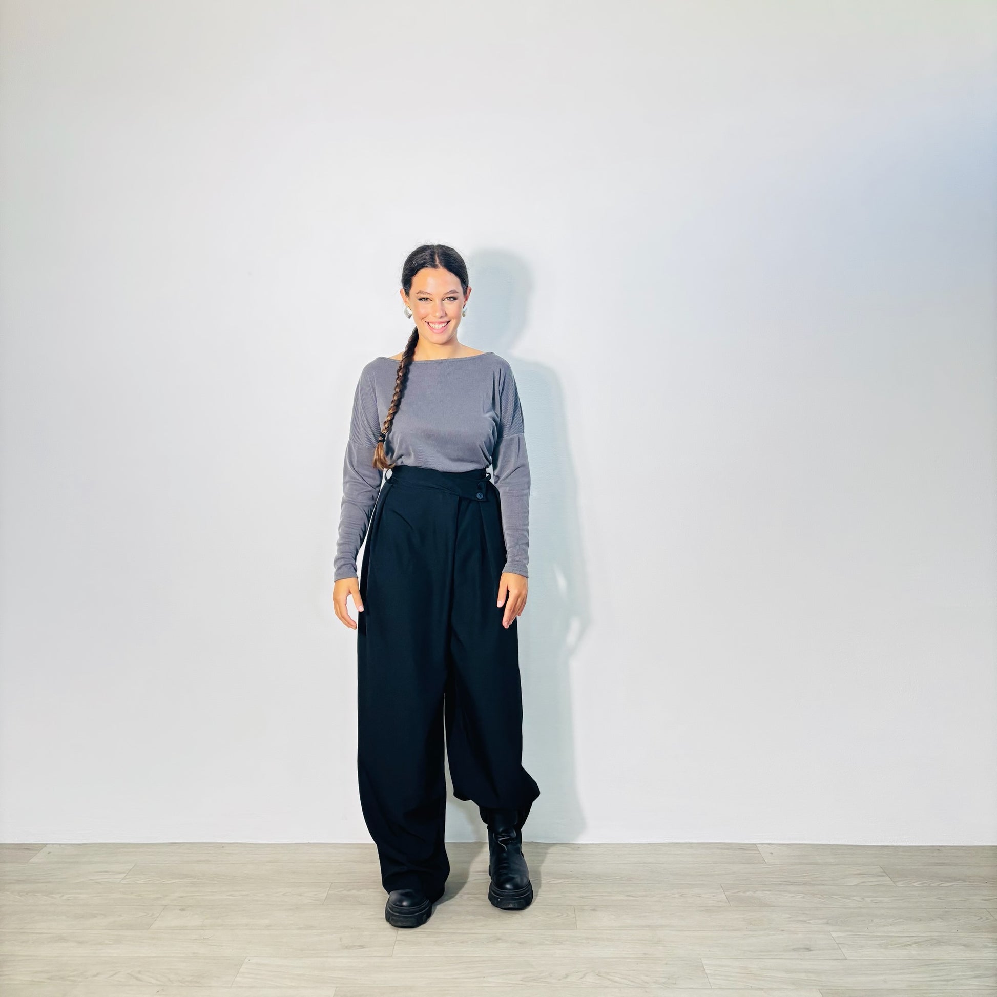 PANTALONE INCROCIO – Dettaglio che fa la differenza. Un pantalone dal taglio moderno, caratterizzato dall’originale abbottonatura ad incrocio che valorizza il punto vita e dona un tocco sofisticato al look. La linea morbida e la vestibilità comoda lo rendono un capo versatile, ideale sia con sneakers per uno stile casual, sia con tacchi o stivaletti per un outfit più elegante.