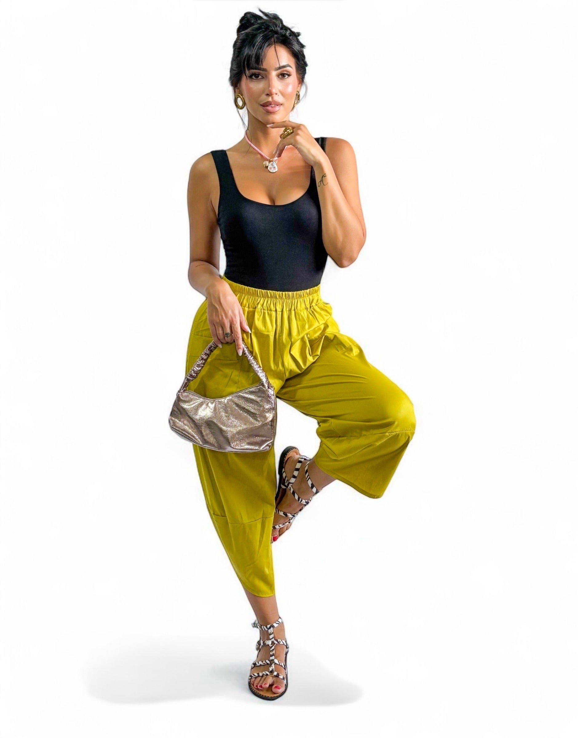 Il Pantalone Japan Senape, realizzato in morbido cotone, offre una vestibilità confortevole grazie all'elastico in vita che si adatta perfettamente al corpo. I tasconi frontali aggiungono praticità senza compromettere lo stile, rendendolo ideale per chi cerca comodità e funzionalità in ogni occasione. Scegli il comfort senza rinunciare all’eleganza.