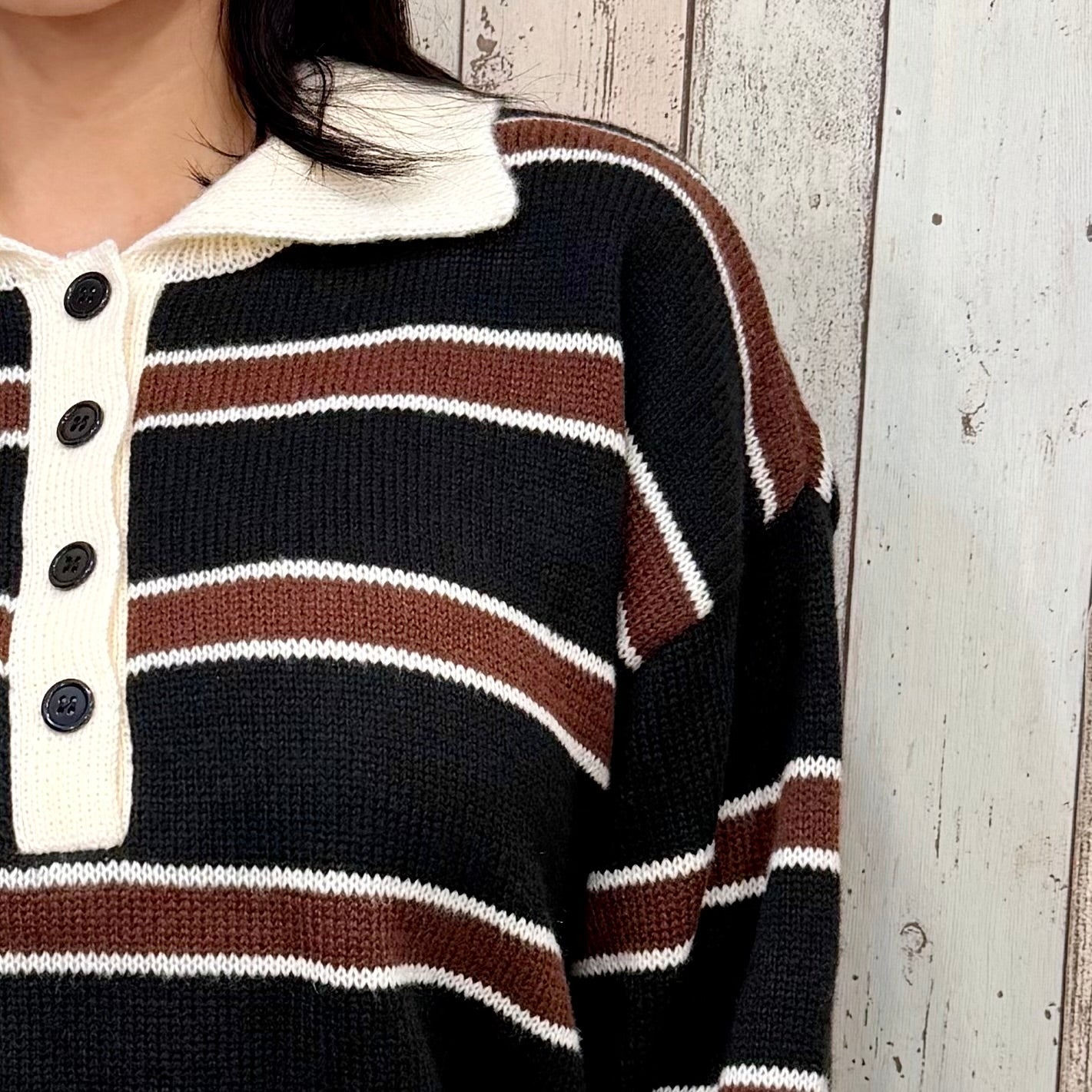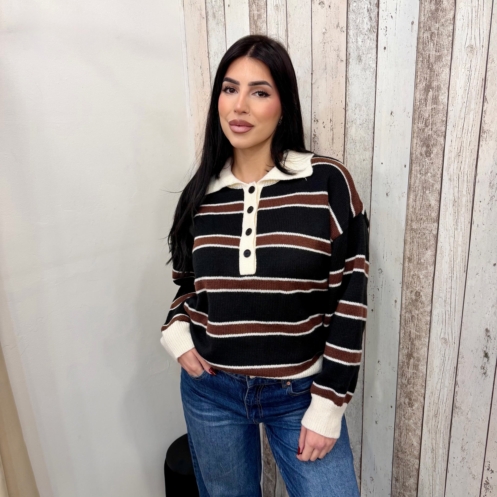 Polo Oxford brown a righe con tre bottoni e un mix di colori. Taglia unica per le taglie S-XL. Unisce stile e comfort per un look versatile e moderno. Ideale per ogni occasione e per ogni tipo di corpo.