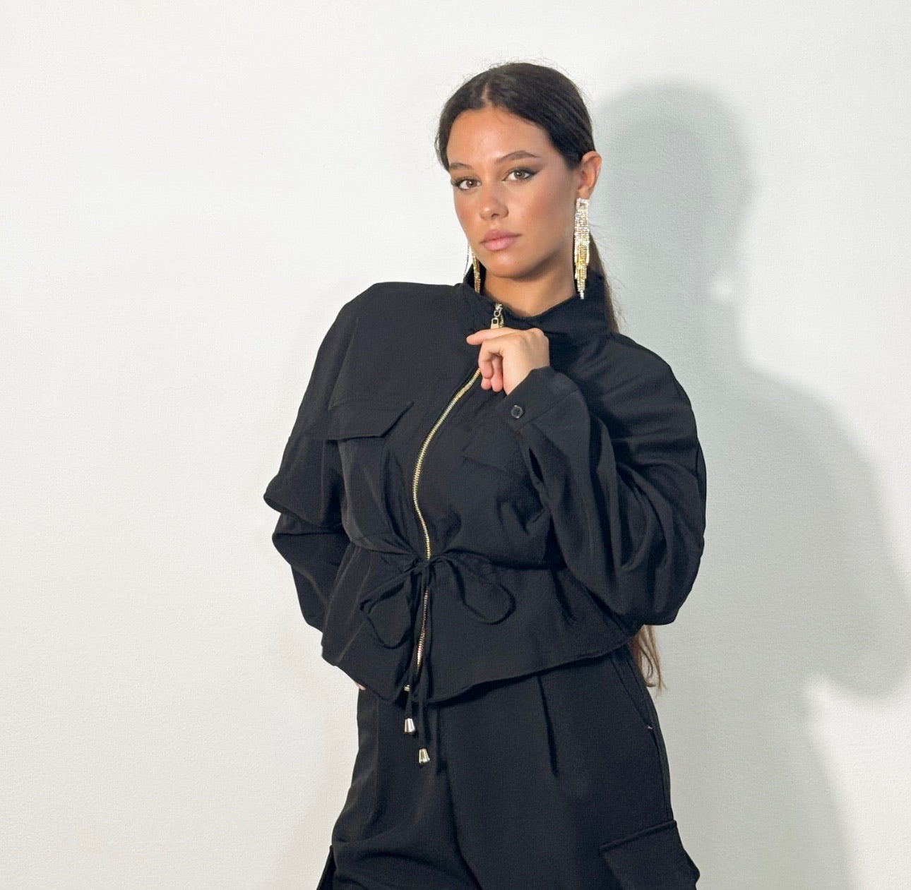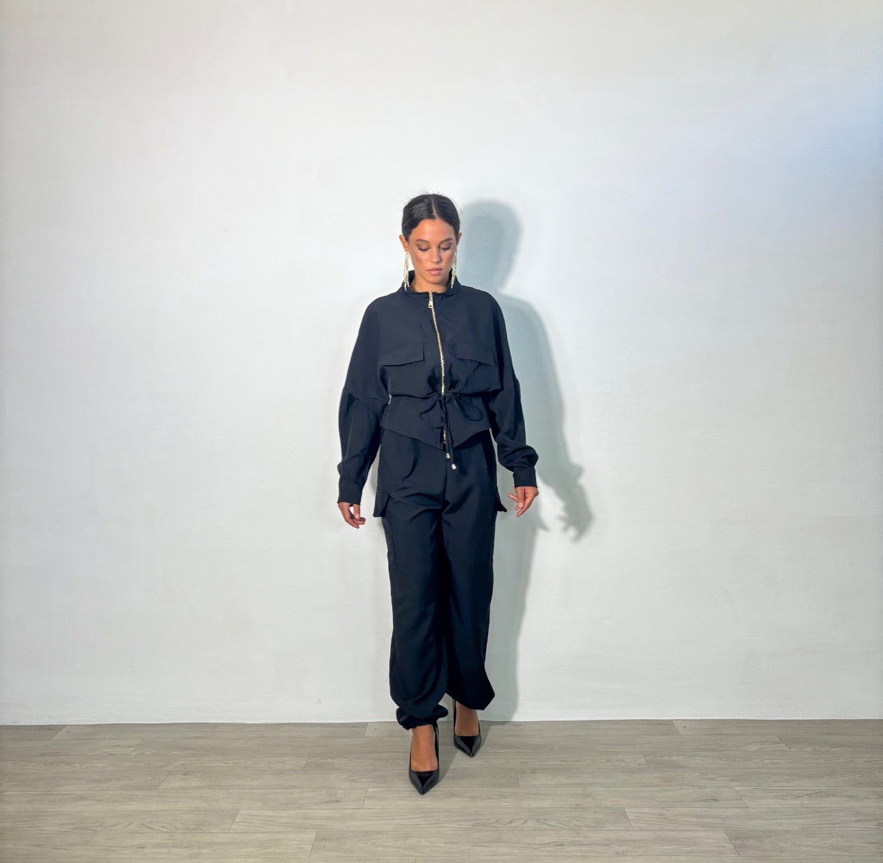 SET CARGO – Stile funzionale e senza tempo. Un set che unisce comfort e praticità con un tocco di carattere. La giacca, con laccio regolabile in vita, definisce e valorizza la silhouette, mentre il pantalone cargo ampio con elastico e tasconi dona libertà di movimento e un mood contemporaneo. Perfetto per il tuo everyday look: versatile, comodo e pensato per accompagnarti con stile in ogni momento della giornata.