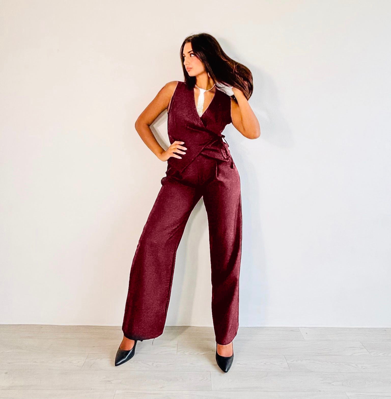 Comodo e versatile, questo set a due pezzi è composto da pantalone con elastico in vita e gilet con laccetto regolabile. Il fit morbido lo rende adatto a diverse fisicità, vestendo comodamente dalla taglia S alla L. Pratico, trendy e super comfy, è un capo leggero e confortevole, perfetto sia per look casual quotidiani che per occasioni più curate. Tessuto: cotone e elastan.
