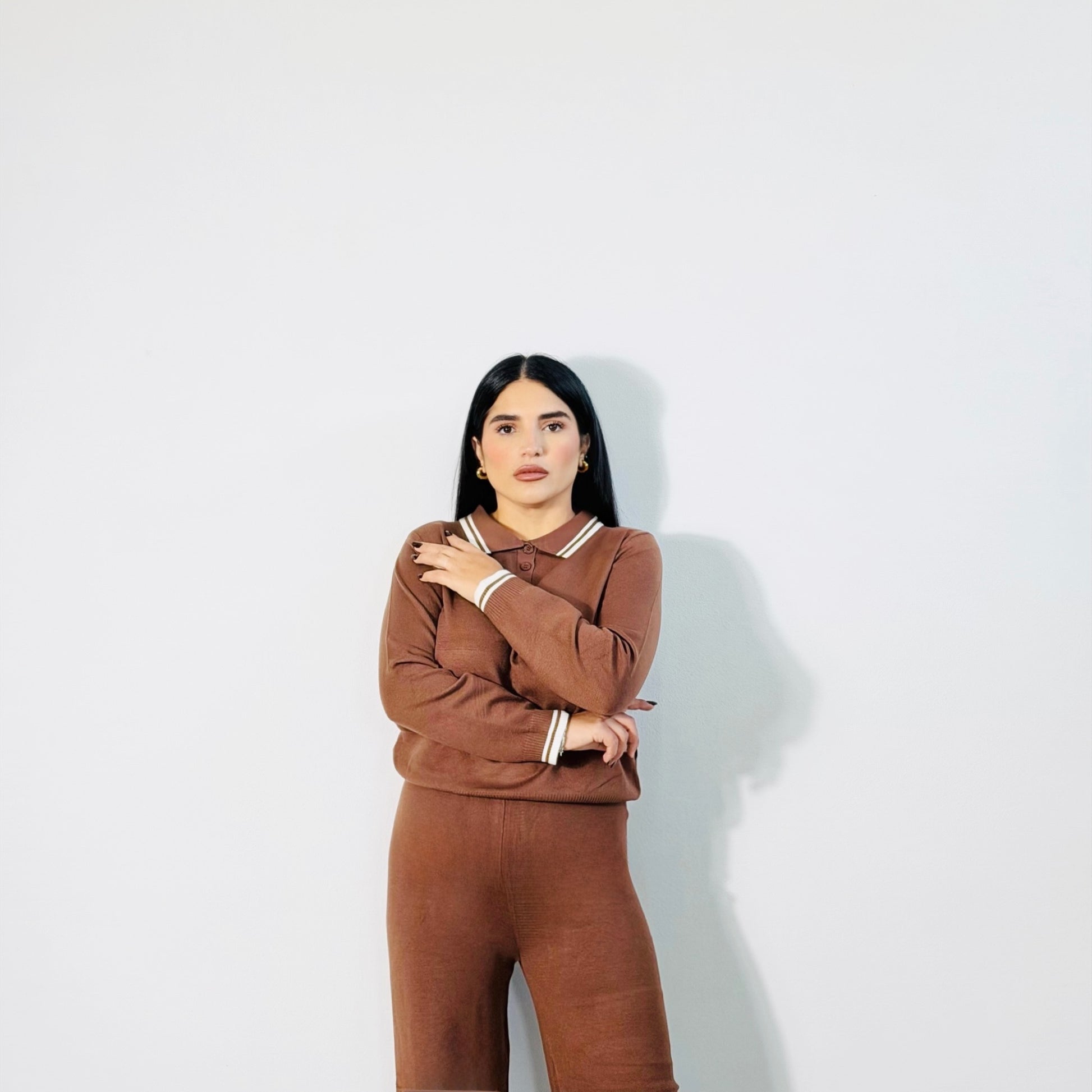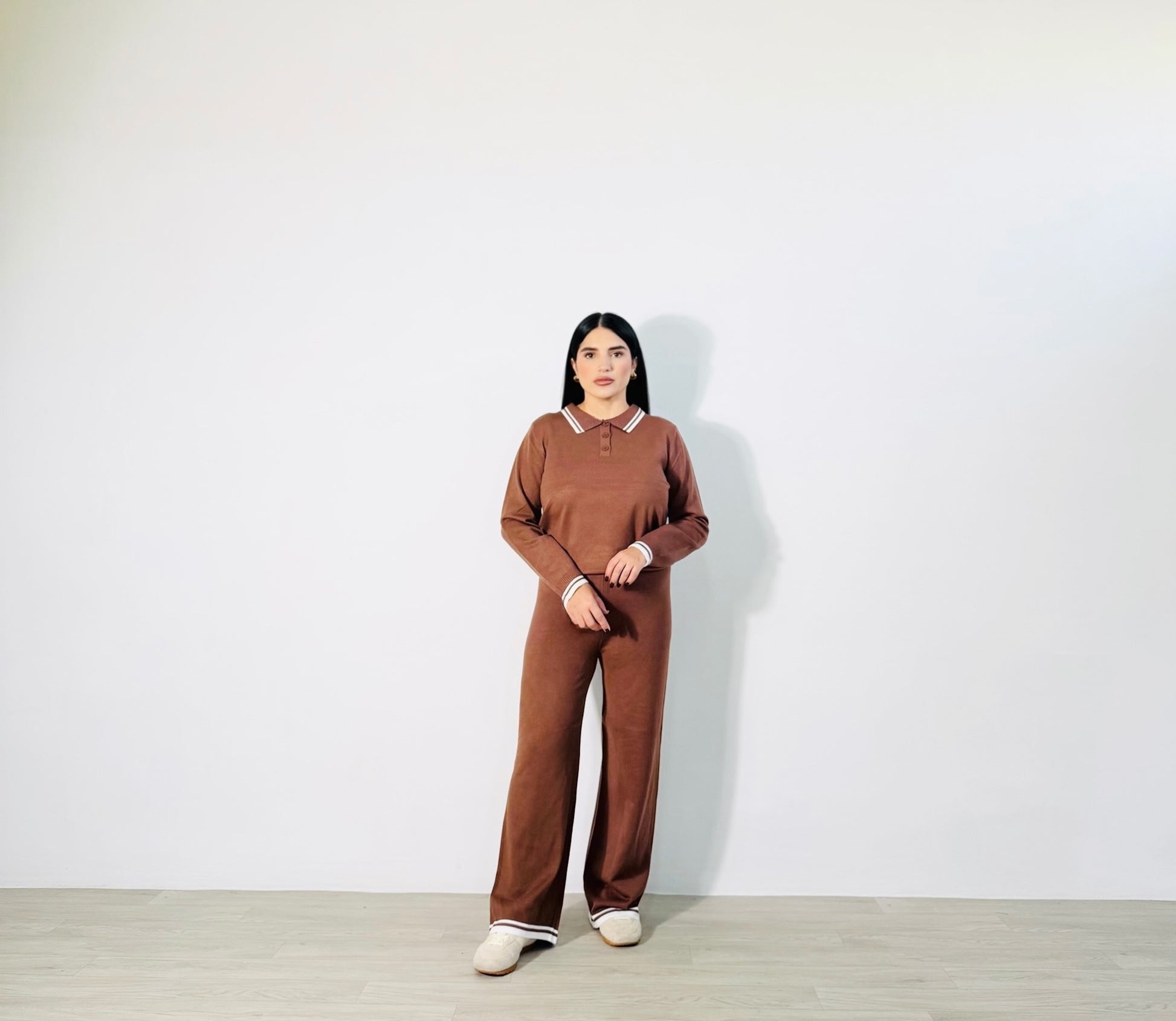 SET SAILOR – Il set che fa la differenza. Un completo due pezzi composto da polo e pantalone morbido, rifinito con dettagli a righe bianche su colletto, polsi e fondo gamba. Ispirato allo stile sailor, questo set unisce comfort e raffinatezza in un design casual chic. Perfetto da indossare con sneakers per un look quotidiano, o con sandali e accessori minimal per un outfit fresco e curato.