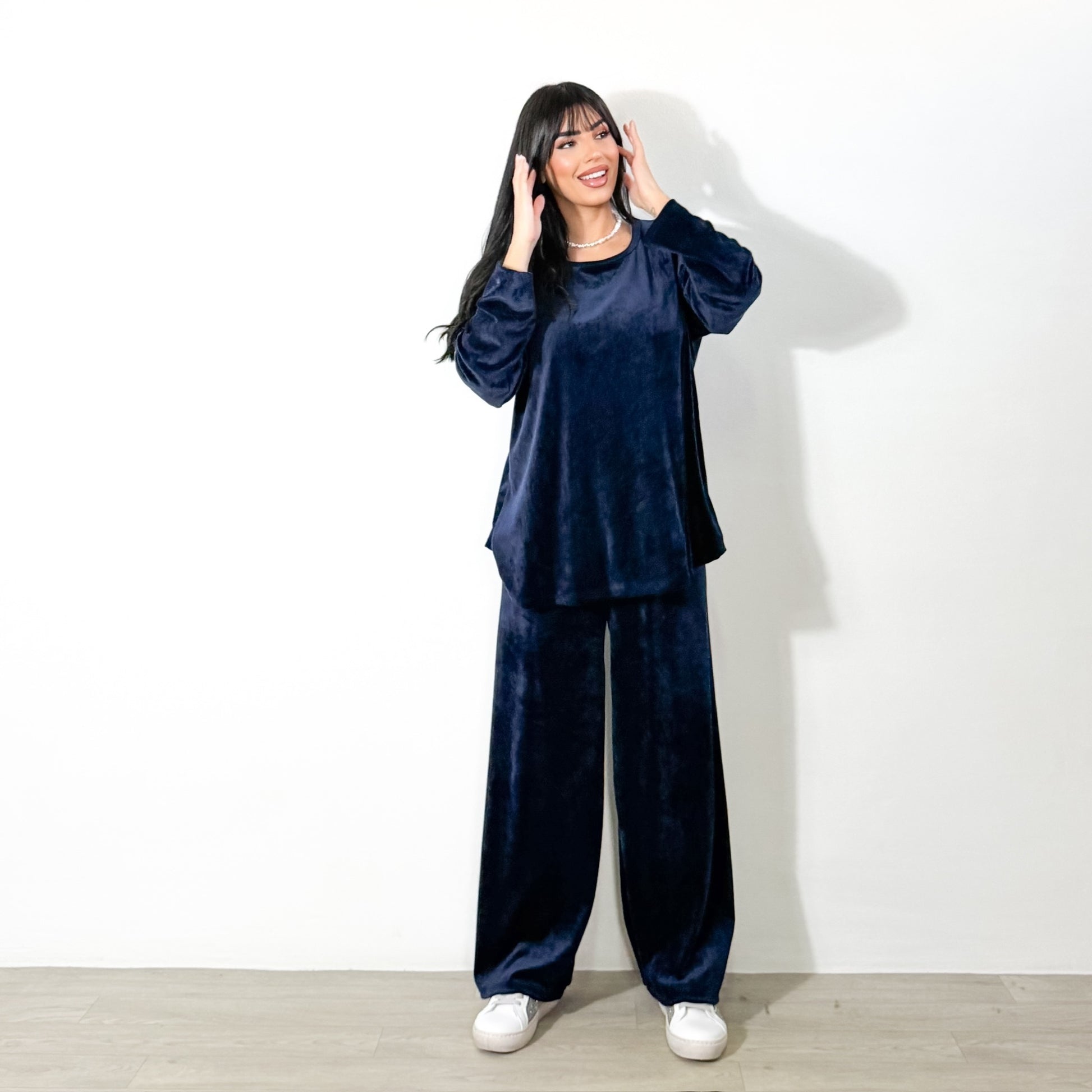 SET VELVET- Riscopri il comfort e lo stile con il nostro Set Velvet, un completo due pezzi in morbida ciniglia composto da pantalone e maglia a manica lunga. Perfetto per creare look casual chic o per rilassarsi con eleganza, questo set unisce praticità e raffinatezza grazie al tessuto vellutato che avvolge delicatamente il corpo.