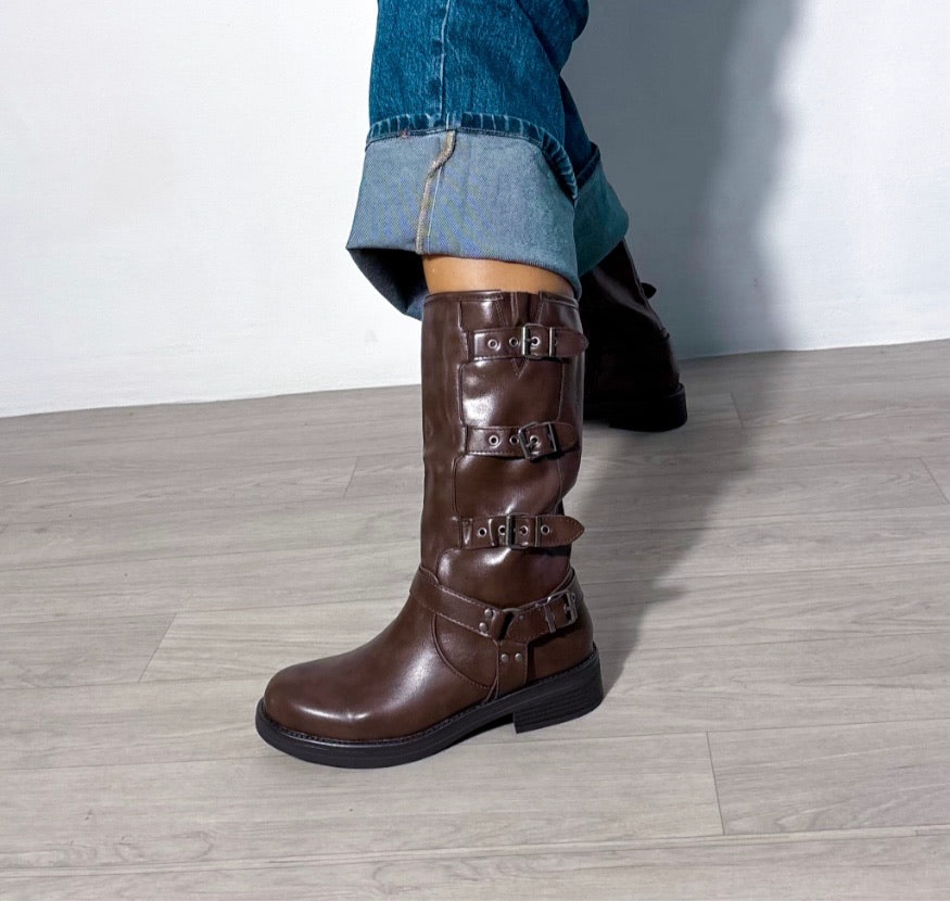 STIVALE BIKER – Lo spirito rock sempre di tendenza. Uno stivale robusto e di carattere, con dettagli tipici dello stile biker che donano grinta e personalità. Versatile e senza tempo, è ideale con jeans e giacca in pelle per un look rock, ma anche abbinato a vestiti femminili per creare un contrasto di stile unico e contemporaneo. Un must-have che non passa mai di moda.