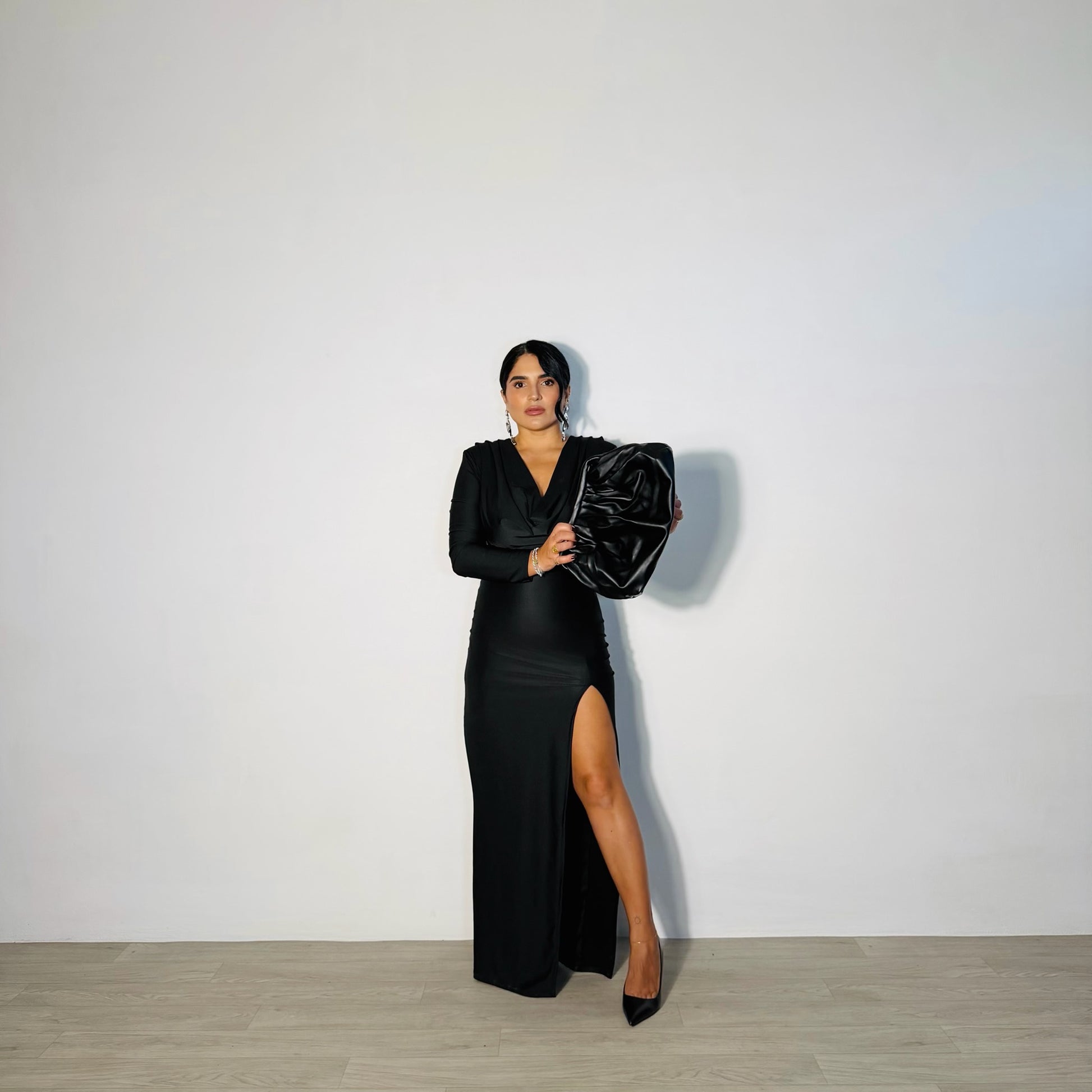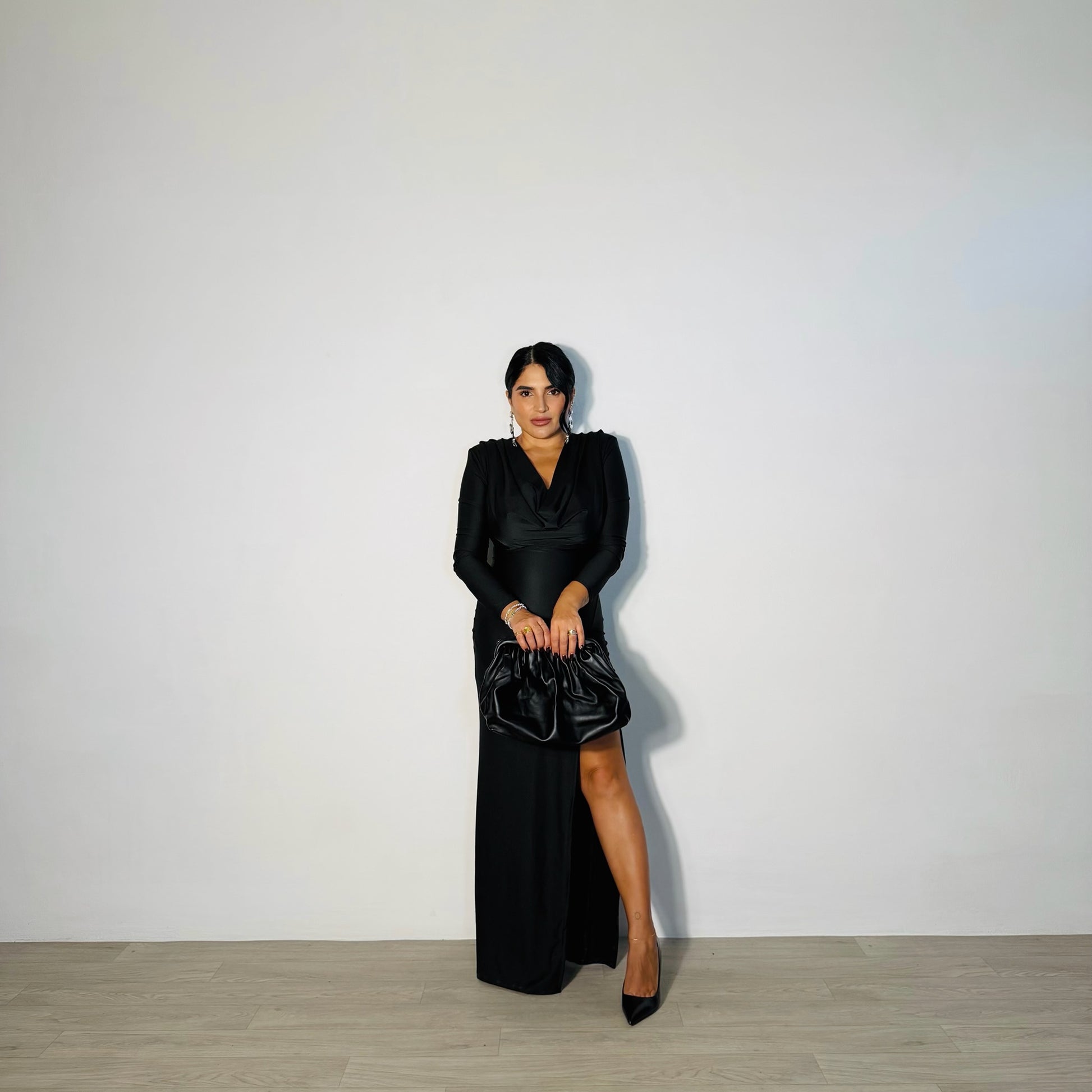 Fai brillare ogni occasione speciale con il nostro vestito party nero. Il taglio aderente effetto guaina valorizza la silhouette, mentre lo scollo sciallato e le spalline aggiungono un tocco sofisticato. Lo spacco sul lato dona movimento e femminilità, rendendolo perfetto per serate, cocktail o eventi glamour.